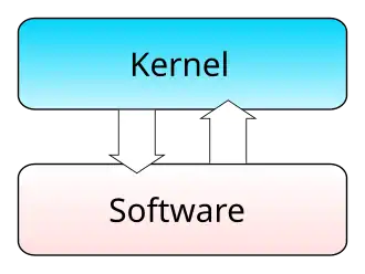 Para realmente realizar algo útil, um processo deve acessar os serviços oferecidos pelo núcleo. Isto é implementado por cada núcleo, mas a maioria oferece uma Biblioteca padrão do C ou uma Interface de programação de aplicativos, que envolve as funções relativas ao núcleo.[14]