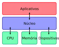 - Unidade de processamento central (CPU, o processador): principal parte de um sistema de computação, responsável por executar programas nele. O núcleo tem a responsabilidade de decidir, em qualquer momento, qual dos programas em execução deve ser alocado para o processador ou processadores (cada um dos quais geralmente pode executar um programa por vez)