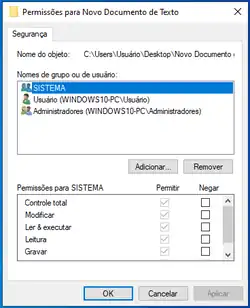 | Permissões de sistema de arquivos | ACLs |