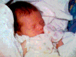 Philippe Kahn trabalhando na primeira câmera telefones 11 junho de 1997, Santa Cruz, CA: Imagem tomada por Philippe Kahn após o nascimento de sua filha.