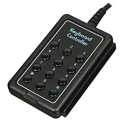 Os controladores de teclado eram usados nos sistemas Atari como entradas auxiliares, incluindo teclados numéricos nos computadores da linha 8-bit e controladores especiais no 2600, como no caso da versão de Star Raiders. Eles eram baseados em uma matriz 4 por 3, totalizando 12 teclas possíveis. Quando uma tecla era pressionada, a linha era codificada ativando um dos quatro bits do registrador de sombra do joystick, PORTA ou PORTB, enquanto a coluna ativava um bit em um dos registradores de gatilho (trigger). O programador precisava ler ambos para identificar qual tecla foi pressionada; não havia firmware para mapear isso em códigos de tecla (o 2600 nem possuía esse conceito).[32]