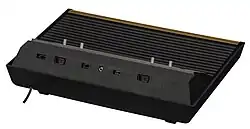 O 2600 foi lançado em 1977, acompanhado por controladores paddle e um joystick. A porta permitia ao console suportar uma variedade maior de jogos — não apenas títulos específicos, mas gêneros inteiros. A maioria dos consoles anteriores ao Atari usava controladores paddle, mesmo os com controles destacáveis, como o Fairchild Channel F e o Magnavox Odyssey. No entanto, o joystick era uma novidade, rapidamente elogiado por permitir controle direto em diversos jogos que seriam difíceis de jogar com paddles.[4] O joystick foi chamado de "o auge dos controladores de entretenimento doméstico em sua época".[5]