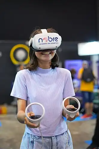 ![]() Menina com um headset de realidade virtual Meta Quest 2 | |||