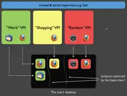 - ↑ «Particionando minha vida digital em domínios de segurança(em inglês)». Joanna Rutkowska. Consultado em 18 de outubro de 2016