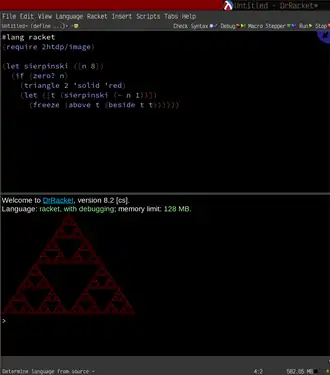Este programa, a partir do Racket website, desenha um triângulo de Sierpinski, aninhado em profundidade 8.
