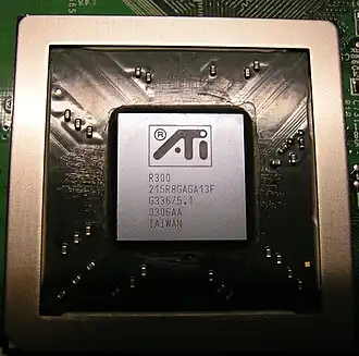 A GPU R300, lançada em agosto de 2002 e desenvolvida pela ATI Technologies, é a terceira geração de GPU usada nas placas gráficas Radeon. Esta GPU apresenta aceleração 3D baseada em Direct3D 9.0 e OpenGL 2.0, uma grande melhoria em recursos e desempenho em comparação com o design R200 anterior. O R300 foi o primeiro chip gráfico de consumidor totalmente compatível com Direct3D 9. Os processadores também incluem aceleração de GUI 2D, aceleração de vídeo e várias saídas de exibição.