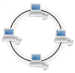 Nesta topologia cada estação está conectada a apenas duas outras estações, quando todas estão ativas. Uma desvantagem é que se, por acaso apenas uma das máquinas falhar, toda a rede pode ser comprometida, já que a informação só trafega em uma direção, que no caso é CIRCULAR.