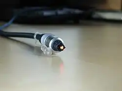 Conector óptico TOSLINK, que segue as especificações S/PDIF.