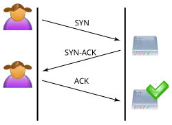 - O cliente por sua vez responde com um ACK, e a conexão está estabelecida.[1]