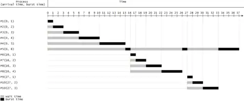 Como o trabalho mais curto em primeiro lugar, ele tem potencial para inanição do processo; longos processos podem ser mantidos indefinidamente se processos curtos forem continuamente adicionados. Essa ameaça pode ser mínima quando os tempos de processo seguem uma distribuição de cauda pesada.<ref>{{cite journal |last=Harchol-Balter |first=Mor |last2=Schroeder |first2=Bianca |last3=Bansal |first3=Nikhil |last4=Agrawal |first4=Mukesh |year=2003 |title=Size-Based Scheduling to Improve Web Performance |journal
