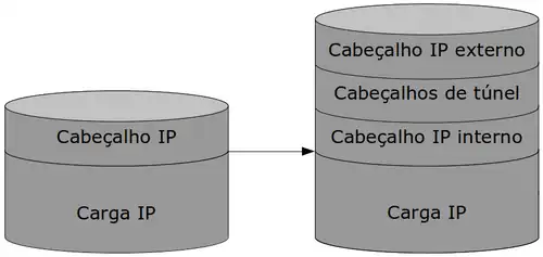 No tunelamento IP, todo pacote IP, incluindo informações de endereçamento de suas redes IP de origem e destino, é encapsulado dentro de outro formato de pacote nativo à rede de trânsito.