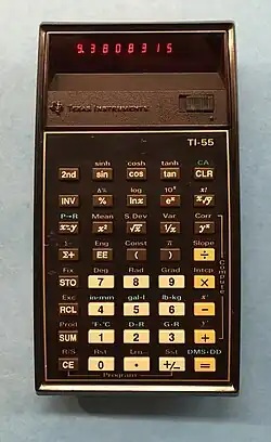 TI-55 é uma calculadora programável fabricada desde 1977 pela Texas Instruments. Tem peso de 6,4 onças (180 gramas) e um display LED.[1]