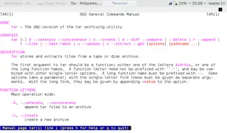 Página de manual do comando GNU tar no Linux