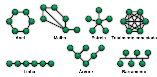 A topologia da rede pode ser estudada por meio de oito topologias básicas:[3]