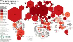 Um cartograma que ilustra o uso do Tor