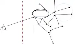 Como podemos observar na figura um único raio pode ser reflectido e refractado indefinidamente, subdividindo-se em vários raios secundários, formando assim uma árvore de raios, mais ou menos, complexa, de acordo com a composição da nossa cena. Para conseguirmos processar esta informação, necessitamos de estabelecer um limite máximo de subdivisões. Um dos métodos utilizados para terminar a inspecção recursiva dos raios secundários, acontece quando a contribuição retornada pelos raios secundários para um determinado pixel, se torna inferior a um determinado valor mínimo previamente definido, ou então tal com referimos anteriormente, quando um raio primário não intersecta qualquer objecto dentro dos limites da cena pré-estabelecidos atribuindo nesse caso a cor de fundo ao pixel em análise.