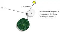 As sombras são verificadas através de raios secundários que são lançados a partir do ponto de intersecção do raio primário com o objecto, em direcção ao foco de luz. Se no seu trajecto o raio voltar a cruzar-se com um objecto, é porque o ponto em análise se encontra na sombra, se não, é porque recebe luz directa.