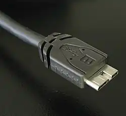 O USB 3.0 também introduziu um novo plugue de cabo Micro-B, que consiste em um plugue de cabo Micro-B USB 1.x/2.0 padrão, com um plugue adicional de 5 pinos "empilhado" dentro dele. Dessa forma, o conector host USB 3.0 Micro-B preservou sua compatibilidade com versões anteriores com os plugues do cabo USB 1.x/2.0 Micro-B, permitindo que dispositivos com portas USB 3.0 Micro-B funcionem em velocidades USB 2.0 em USB 2.0 Micro-B cabos. No entanto, não é possível conectar um plugue USB 3.0 Micro-B em um receptáculo USB 2.0 Micro-B, devido a um conector fisicamente maior.