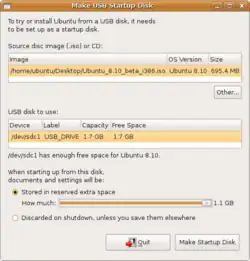 Ubuntu Live USB creator é uma ferramenta oficial para criar Live USBs do Ubuntu a partir de um ficheiro .iso. Já está incluído nos repositórios do Ubuntu 8.10.[1]