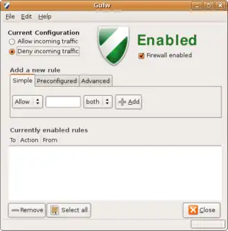 GUI for Uncomplicated Firewall, como o nome indica, é uma interface gráfica para a Uncomplicated Firewall. Já está incluída no Super Ubuntu.