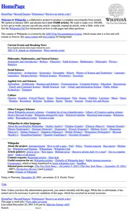 - ↑ «Wikipedia: HomePage». Bomis. 24 de janeiro de 2002. Consultado em 6 de novembro de 2021. Arquivado do original em 24 de janeiro de 2002