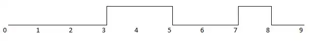 x ⇐ '1' after 3s, '0' after 5s, '1' after 7s, '0' after 8s;