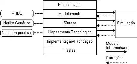 A VHDL, tal como outras linguagens seguem um fluxo de projeto bem definido, composto de sete etapas[carece de fontes], como apresenta a Figura 1: Especificação de Requisitos, Modelamento, Síntese de Alto Nível, Mapeamento Tecnológico, Implementação e ou Fabricação, Testes e Simulação. O tempo e o custo de cada etapa dentro de um projeto varia bastante, dependendo da tecnologia utilizada para implementar o sistema.