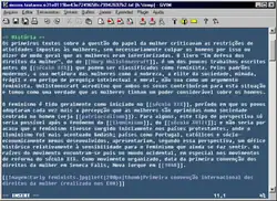 ![]() Tela do gVim, uma das implementações do Vim, editando artigo da Wikipédia. | |