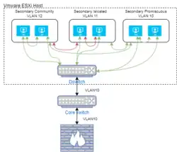 Enlaces switch-a-switch e switch-a-roteador são chamados de troncos. Um roteador ou switch de camada 3 serve como o backbone entre o tráfego que passa através de VLANs diferentes.[1]