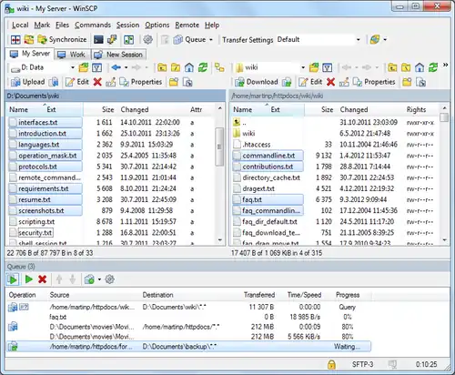 ![]() Captura de tela do WinSCP versão 5.5.2 | |
