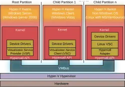 O Hyper-V é um software de virtualização baseado em hipervisor, formando uma parte essencial da estratégia de virtualização da Microsoft. Ele virtualiza os servidores em camada de núcleo do sistema operacional. Pode ser pensado como particionar um único servidor físico em múltiplas pequenas partições computacionais. O Hyper-V inclui a capacidade de atuar como um host de hipervisor de virtualização Xen, permitindo que os sistemas operacionais convidados que reconhecem o Xen sejam executados como sistemas virtualizados. [17] Uma versão beta do Hyper-V foi lançada como parte de certas edições em x86-64 do Windows Server 2008, antes do lançamento da versão final do Hyper-V pela Microsoft, em 26 de junho de 2008, como download gratuito. Além disso, existe uma versão independente do Hyper-V; esta versão suporta apenas a arquitetura x86-64.[18] Embora as edições em IA-32 do Windows Server 2008 não possam executar ou instalar o Hyper-V, elas podem executar o snap-in do MMC para gerenciar o Hyper-V.