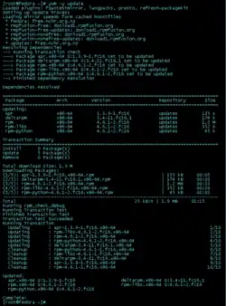 ![]() Uma captura de tela da Yum executando uma atualização em Fedora 16. | |