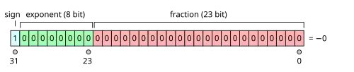 Em números binários de ponto flutuante IEEE 754, valores zero são representados pelo expoente polarizado e significando que ambos sendo zero. O zero negativo tem o bit de sinal definido para um. Um pode obter zero negativo como o resultado de determinados cálculos, por exemplo, como resultado de subfluxo aritmético em um número negativo, ou −1.0×0.0, ou simplesmente como −0.0.[1]