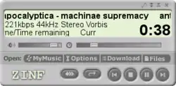 Zinf é um Reprodutor de mídia de código aberto lançado sob a GNU General Public License. Ele roda em sistemas operacionais Unix e Windows. Zinf é uma continuação do projeto FreeAmp e usa o mesmo código fonte.