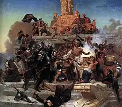 Em 1521, soldados espanhóis liderados por Hernán Cortés invadiram o Império Asteca e ocuparam e saquearam sua capital, Tenochtitlán (atual Cidade do México).