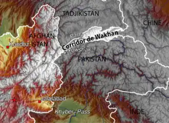 - Afeganistão : corredor de Wakhan, no leste da província de Badakhshan.