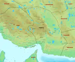 Um filho de Artaxer, também chamado Artaxer, foi nomeado como governador da Carmânia e deu-lhe o título de "xá da Carmânia" (Kirmanshah), que continuaria a governar durante o reinado do sucessor de Artaxer, Sapor I (r. 240–270). Segundo uma lenda, a cidade de Maane foi também de fundação sassânida, sendo fundada por outro governador sassânida da Carmânia, Adar Maane.[1] Sapor II (r. 309–379), após uma campanha bem sucedida contra várias tribos árabes na Arábia, reassentando algumas delas em diferentes partes de seu império, tais como Carmânia, onde assentou alguns árabes em Abam.[2] Durante o reinado de Sapor III (r. 383–388), seu filho Vararanes IV governou a Carmânia, onde construiu a cidade de Xiragam, que serviria como capital pelo resto do período sassânida.[3][4] A cidade desempenhou um importante papel econômico, pois servia como casa da moeda e tinha grande relevância agriculturável à província.[5]