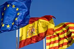 Bandeira da União Europeia, da Espanha e da Catalunha