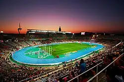 Panorama do interior do estádio Camp Nou do Futbol Club Barcelona