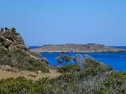 O ilhéu de Micronissi visto da ilha de Chrissi