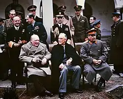 Os "Três Grandes" na Conferência de Ialta, na Crimeia: Winston Churchill, Franklin D. Roosevelt e Josef Stalin