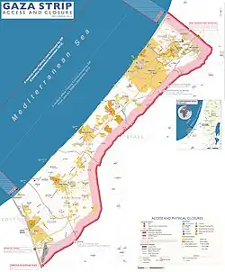 - ↑ a b c «Easing the blockade – Assessing the humanitarian impact on the population of the Gaza Strip» (PDF). UNITED NATIONS Office for the Coordination of Humanitarian Affairs occupied Palestinian territory. Março de 2011. Consultado em 16 de julho de 2011. Arquivado do original (PDF) em 26 de julho de 2011