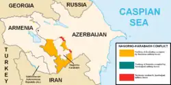 Há uma área disputada pelos dois países, área de Nagorno-Karabakh. Trata-se de um enclave dentro do Azerbaijão, sendo hoje ocupada pela Armênia. Essa região tem 80% de população armênia e cristã dentro de um país de maioria muçulmana. Houve guerra entre 1991 e 1992, mas as disputas já existiam mesmo antes de 1921, quando ambos países foram incorporados à União Soviética.