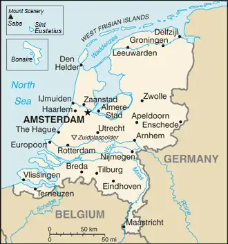 - Ao oeste: Utreque; Holanda do Norte e Holanda do Sul; Zelândia;