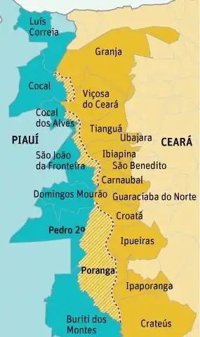 Os municípios cearenses envolvidos na questão são: Granja, Viçosa do Ceará, Tianguá, Ubajara, Ibiapina, São Benedito, Carnaubal, Guaraciaba do Norte, Croatá, Ipueiras, Poranga, Ipaporanga e Crateús. Já no lado piauiense, os municípios afetados incluem: Luís Correia, Cocal, Cocal dos Alves, Piracuruca, São João da Fronteira, Pedro II, Buriti dos Montes, Domingos Mourão e São Miguel do Tapuio[6].