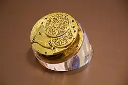 O mecanismo do cronômetro marinho H4 de John Harrison em exibição no Royal Observatory, Greenwich