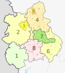 | 8. Worcestershire † | a) Bromsgrove, b) Malvern Hills, c) Redditch, d) Worcester, e) Wychavon, f) Wyre Forest | ||