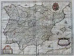 Após a conquista de Navarra em 1512, não sendo a primeira vez que se reivindicava o título Imperator totius Hispaniae (Imperador de toda a Hispânia), em 1580 a Coroa de Castela consegue efetivamente o controle de todos os reinos da Península Ibérica, com Filipe II e I de Portugal (que passará a ostentar o título Philippus Dei Gracia Hispaniarum Utrius que Siciliae, Hierusalem, Indiarum, Insularum ac Terrae Firmae Maris Oceani Rex — Rei de todas as Espanhas, das Sicílias, Jerusalém, Índias, e das Terras Firmes e Insulares do Oceano) num período denominado União Ibérica. No trato com o "Novo Mundo" foram respeitadas as proibições de circulação entre as rotas marítimas dos dois impérios, sendo que a coroa portuguesa tinha o seu monopólio na Casa da Índia, em Lisboa, e os territórios peninsulares administrados pela Coroa de Castela tinham o monopólio fixado na Casa de Contratação das Índias, em Sevilha.[48] Em junho de 1640 rebenta a Guerra dos Segadores no Principado da Catalunha e os nobres portugueses opõem-se à organização de tropas para lutar contra os revoltosos, culminando numa insurreição que a 1 de dezembro de 1640 leva à Restauração da Independência portuguesa.[49][50]