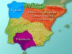 Convém destacar que este povo germânico não obteve o mesmo sucesso que Roma na sua conquista, não conseguindo um domínio integral da Península, tal como Roma havia conseguido. A parte da atual Galiza e os territórios setentrionais de Portugal estavam sob domínio dos suevos, que mais tarde coexistiram com os visigodos. O País Basco, que protagonizou várias revoltas, apesar de todas estas invasões e domínios, soube preservar uma cultura e língua pré-romana única.[33][34][35]