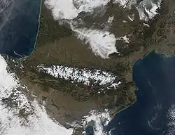 Os Pirenéus vistos do espaço (imagem da NASA)